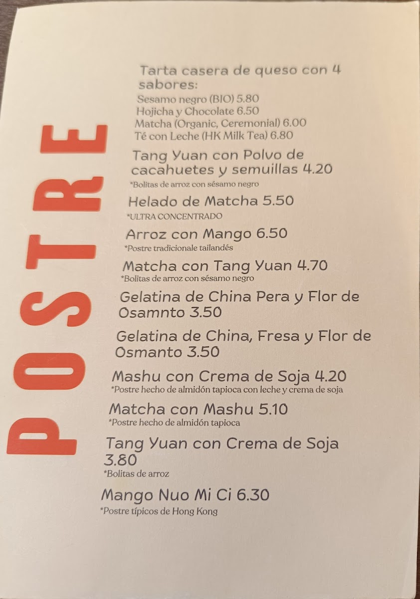 The interior of Mulan木蘭 delights with its warm, inviting atmosphere, where cleanliness meets a harmonious design. It's a place you can retreat to for a gentle respite from the bustling town known for its seafood. Here, you’ll find a menu that is a testament to the art of dessert-making, featuring exquisite offerings such as the creamy Tang Yuan with soy cream (€3.80) and the Mango Rice (€6.50), a traditional Thai dessert bursting with tropical flavors.